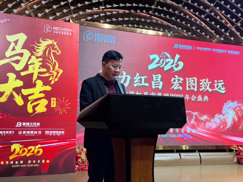 在全场热烈的掌声中,集团董事长黄祝清登台致年会开幕词。他深情回望2025年的奋斗征程,对全体员工的辛勤付出、家属的默默支持与合作伙伴的鼎力相助致以最诚挚的感谢。展望2026马年新征程,黄董字字铿锵:集团将聚焦风险防控、财务优化、项目拓展三大核心方向,组建专业团队构建标准化风险防控体系,通过资产盘活、资金管控深化降本增效,加大数字化转型投入,深化政企合作与多元渠道拓展,推动对公、对私业务协同增长,向着“建筑行业领军企业”的目标稳步迈进。董事长的致辞既饱含温情关怀,又充满奋进力量,为全体红昌宏人锚定了新一年的前行航向。