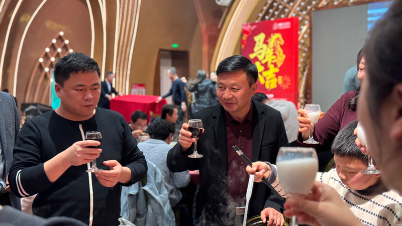 夜幕降临,答谢晚宴温馨开启。主持人邀请集团领导登台,与全体同仁共同举杯。“黄祝清董事长领头祝愿中筑红昌宏集团前程似锦,祝愿各位同仁马年大吉、万事如意!”清脆的碰杯声交织着欢声笑语,杯中酒盛满了对过去一年的感恩,更承载着对未来的美好期许。大家围坐一堂,共享美食、畅谈过往、共话未来,在温馨祥和的氛围中,为这场年度盛典画上了圆满的句号。