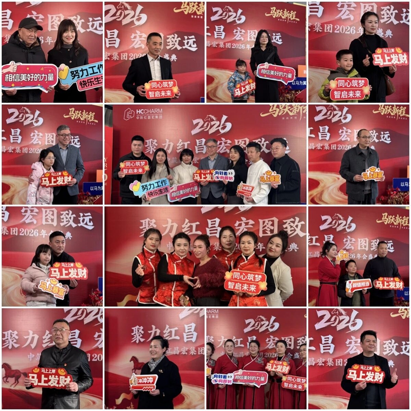 踏入年会现场,签到墙前热闹非凡。大家纷纷在此留下自己的身影,或摆出自信的姿势,或与同事并肩合影,或带着家属共享荣光,一张张笑脸被镜头定格,既记录下团圆时刻的温馨,更展现出红昌宏人积极向上、意气风发的精神风貌。